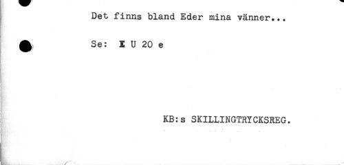 //// Det finns bland Eder mina vänner... //// ^ Se: X U 20 e //// i //// K.. . //// KB:s SKILLINGTRYCKSREG. //// L - .....- ////