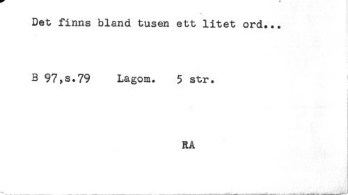 //// * //// Det finns bland tusen ett litet ord... //// B 97,s.79 Lagom. 5 str. //// t //// i //// RA ! //// < //// i //// i //// < //// i ////