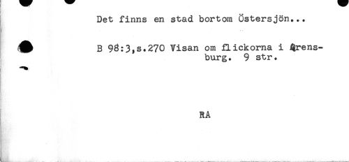 //// Det finns en stad bortom Östersjön... //// B 96:3,s.270 Visan om fLickorna i ^rens- //// bur g. 9 str. //// t //// ! //// RA ////