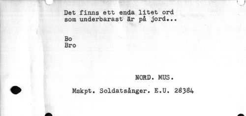 //// Det finns ett enda litet ord //// som underbarast år på jord... //// j ' - //// - //// - //// Bo //// Bro //// . //// NORD. MUS. //// ., St //// ^ Mskpt. Soldatsånger. E.U. 23384 ////