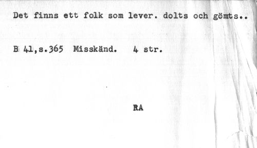 //// Det finns ett folk som lever, dolts och gömts., j //// B 41,s.365 Misskänd. 4 str. 1 å //// * t' //// -^wnMr i v i) //// < . '-. ) '.t'-t . ' r -. < \ 1] //// RA //// a //// ; ! ////
