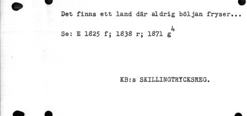 //// Det finns ett land där aldrig böljan fryser... //// 4 //// Se: E 1325 f; 1338 r; 1371 g //// KB:s SKILLINGTRYCKSREG. //// ! . * * . . //// ^ H å H ^^ ////