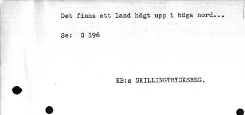 //// Det finns ett land högt upp i höga nord... //// Se: G 196 //// . //// . //// * //// KB:s SKILLINGTRYCKSREG. //// . ////