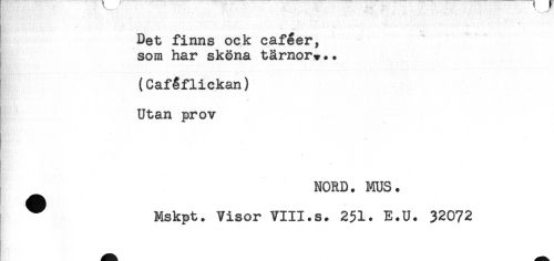 //// Det finns ock caféer, //// som har sköna tärnor?.. //// (Caféflickan) //// Utan prov //// NORD. MUS. //// ^ Mskpt. Visor VIII.s. 251. E.U. 32072 //// B ////
