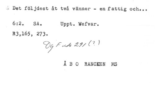 //// a Det följdest åt två vänner - en fattig och... //// 6:2. SA. Uppt. Wefvar. //// R3,165, 273. //// ÅBO RANCKEN MS ////