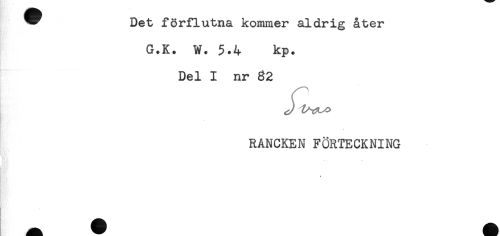 //// ^ Det förflutna kommer aldrig åter //// G.K. W. 5.4 kp. //// Del I nr 62 //// t //// RANCKEN FÖRTECKNING //// . -- ////