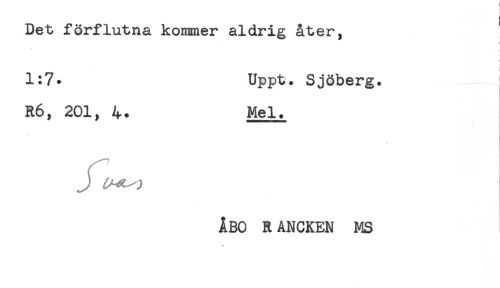 //// ! //// Det förflutna kommer aldrig åter, //// < //// ! //// 1:7. Uppt. Sjöberg. //// R6, 201, 4. Mel. //// ! //// J //// ÅBO RANCKEN MS ////