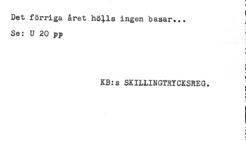 //// Det förriga året hölls ingen basar... I //// t< * //// Se: U 20 pp * //// H //// = //// < //// r //// KB:s SKILLINGTRYCKSREG. ' //// a //// H //// < //// f- //// H //// h //// ! //// ) //// H ////