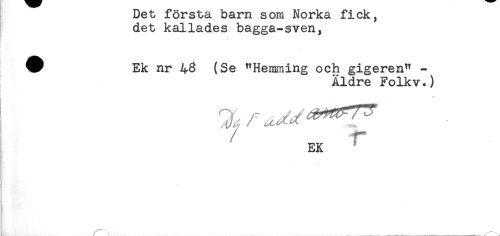 //// ue^ iors^a Dam som i^or^a ncK, //// det kallades bagga-sven^ //// ! //// i* //// W Ek nr (Se "Hemming och gigeren" - //// Äldre Folkv.) //// ; //// / f //// EK //// t //// .. - . ____—.......—, . ////