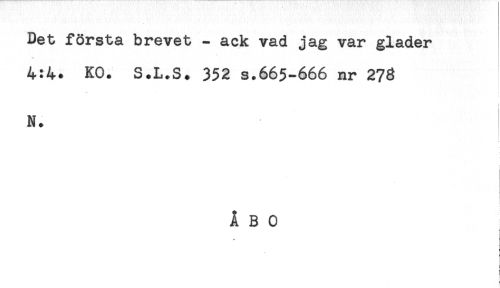 //// Det första brevet - ack vad jag var gläder //// 4:4. KO. S.L.S. 352 s.665-666 nr 273 //// t //// N. //// t //// ÅBO ////
