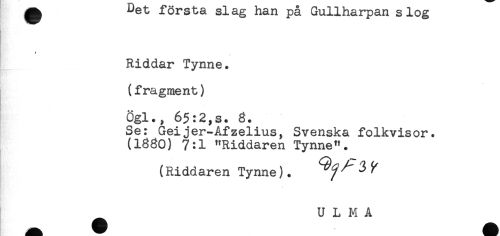 //// ^ - -*- v JL ^^ ^jtg, AAt-tAA ULJL.JLJ.iCi. A j^Ct-AJL D //// Riddar Tynne. //// (fragment) //// Ögl., 65:2,s. 8. //// Se: Geijer-Afzelius, Svenska folkvisor. //// (1880) 7:1 "Riddaren Tynne". //// (Riddaren Tynne). ^ //// U L M A ////