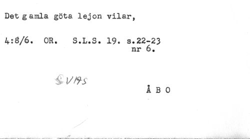 //// Det gamla göta lejon vilar, //// 4:6/6. OR. S.L.S. 19. s.22-23 //// nr 6. //// i //// ÅBO ////