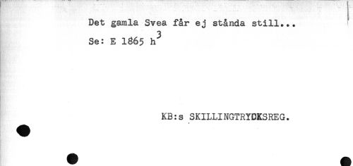 //// — — - - '-. .. . .. ____. //// ! //// - //// Det gamla Svea får ej stånda still... //// 3 //// Se: E 1865 h //// ' //// KB:s SKILLINGTRYUKSREG. ////