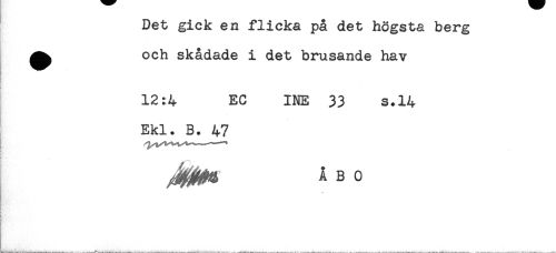 //// Det gick en flicka på det högsta berg //// ^ och skådade i det brusande hav //// 12:4 EC INE 33 s.14 //// Ekl. B. 47 //// A B o //// j! ////