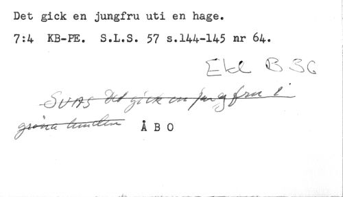 //// Det gick en jungfru uti en hage. //// 7:4 KB-FE. S.L.S. 57 s.144-145 nr 64. //// f //// ! //// ÅBO //// .. ..—— -- -«- __—_ _^ —--- - - ^ - — ////