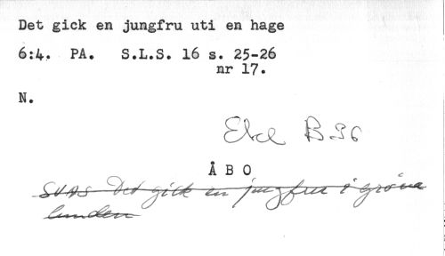 //// Det gick en jungfru uti en hage //// : //// 6:4. PA. S.L.S. 16 s. 25-26 //// nr 17. //// N. //// Å BO ^ //// - //// . ////