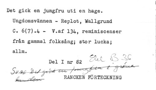 //// Ungdomsvännen - Replot, Wallgrund //// C. 6(7).4 - V.af 134, reminiscenser //// från gammal folksång; stor lucka; ; //// allm. //// Del I nr 82 ^ '. ^ j //// RANCKEN FÖRTECKNING ////