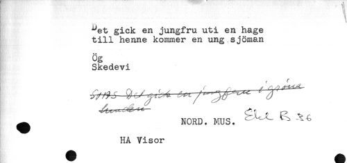 //// ^ . ... . ... . . .. - ... .. .. . . . ^ - - - . - //// ^et gick en jungfru uti en hage //// till henne kommer en ung.sjöman //// ^..... //// Ög //// Skedevi //// ^ NORD. MUS. ^^^ ^ ^^ //// HA Visor ////