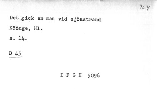 //// //// /Det gick en man vid sjöastrand //// Kömnge, Hl. //// s. 14. //// D 45 //// I F G H 5096 ////
