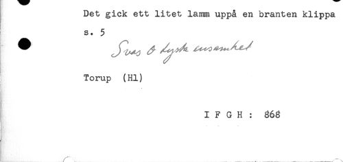 //// Det gick ett litet lamm uppå en branten klippa //// s. 5 //// Torup (Hl) //// I F G H : 863 //// r ////