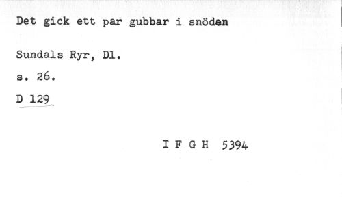 //// Det gick ett par gubbar i snödan //// i //// Sundals Ryr, Dl. //// s. 26. //// D 129 //// I F G H 5394 ////