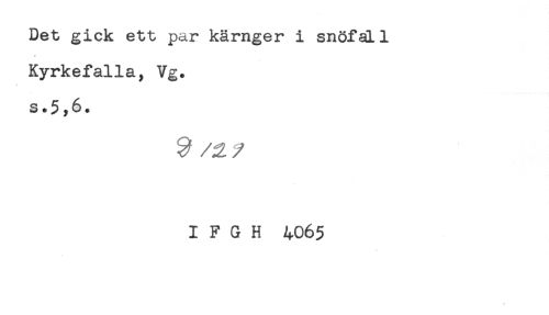 //// Det gick ett par kärnger i snöfall //// Kyrkefalla, Vg. //// i //// s #5,6. //// I F G H 4065 ////