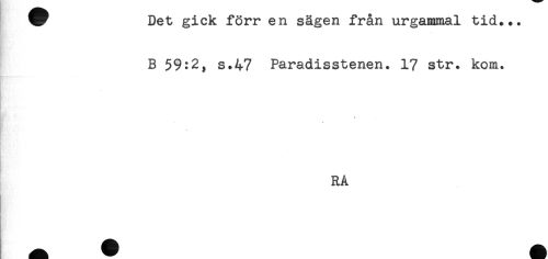 //// V Det gick förr en sägen från urgammal tid... //// B 59:2, s.47 Paradisstenen. 17 str. kom. //// ' //// - //// RA ////