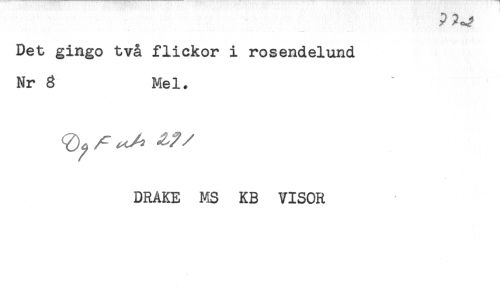 //// Det gingo två flickor i rosendelund //// Nr 8 Mel. //// DRAKE MS KB VISOR ////