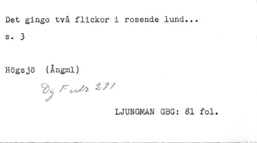 //// Det gingo två flickor i rosende lund... //// s. 3 //// Högsjö (Angml) //// LJUNGMAN GBG: 81 fol. ////