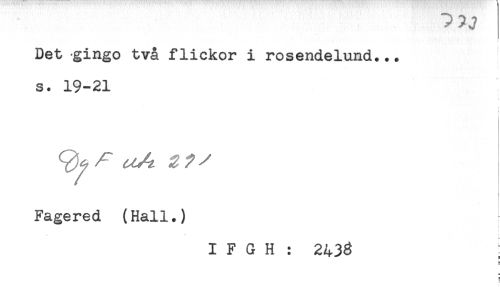 //// Det -gingo två flickor i rosendelund... //// s. 19-21 //// < //// < //// Fagered (Hall.) //// I F G H : 2433 ////