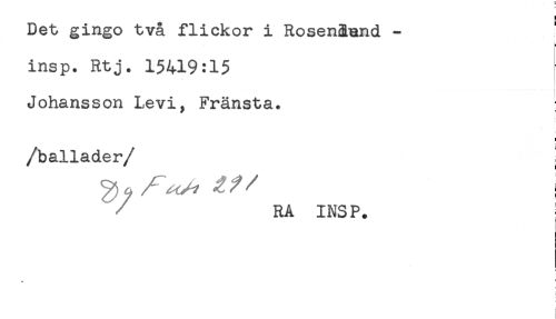//// Det gingo två flickor i Rosen&and - //// * //// ! //// insp. Rtj. 15419:15 //// Johansson Levi, Fränsta. //// /ballader/ ; //// RA INSP. //// <# * ////