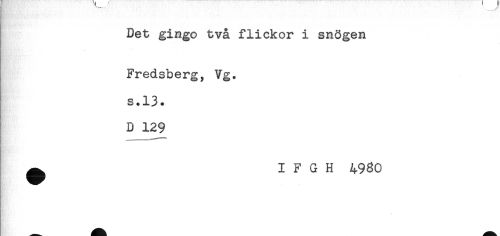 //// Det gingo två flickor i snögen //// Fredsberg, Vg. //// s.13. //// ] D 129 //// ^ I F G H 4930 ////