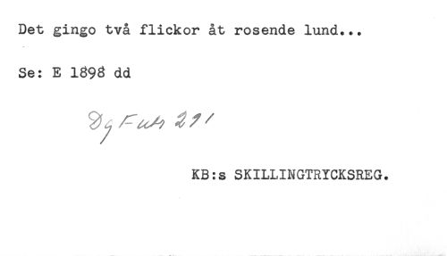 //// Det gingo två flickor åt rosende lund... //// Se: E 1893 dd //// KB:s SKILLINGTRYCKSREG. ////