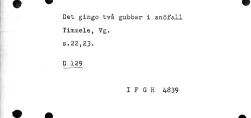 //// Det gingo två gubbar i snöfall //// * //// Timmele, Vg* //// s.22,23. //// D 129 //// I F G H 4839 ////