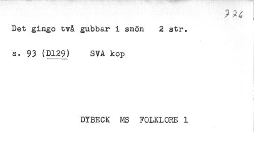 //// < //// Det gingo två gubbar i snön 2 str. //// s. 93 (D129) SVA kop //// i //// c //// DYBECK MS FOLKLORE 1 ////