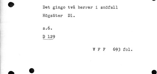 //// ^ Det gingo två herrar i snöfall //// Högsäter Dl. //// s.6. //// D 129 //// V F F 693 fol. ////