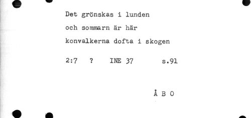 //// Det grönskas i lunden //// och sommarn är här //// konvalkerna dofta i skogen //// 2:7 ? INE 37 s.91 ////