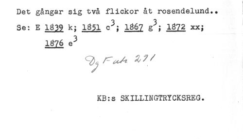 //// Det gångar sig två flickor åt rosendelund.. //// 3 ^ 3 ^ //// Se: E 1839 k; 1851 c*; 1867 g ; 1872 xx; //// KB:s SKILLINGTRYCKSREG. //// < ////