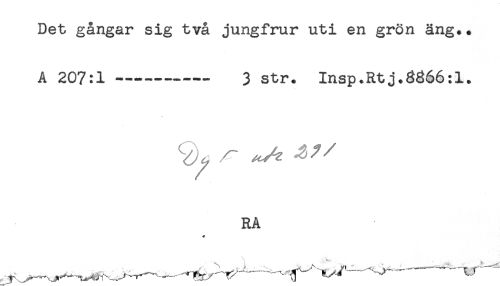 //// Det gångar sig två jungfrur uti en grön äng.. //// A 207:1 ——---- 3 str. Insp+Rtj.3366:1. //// -i //// RA //// <+ ////
