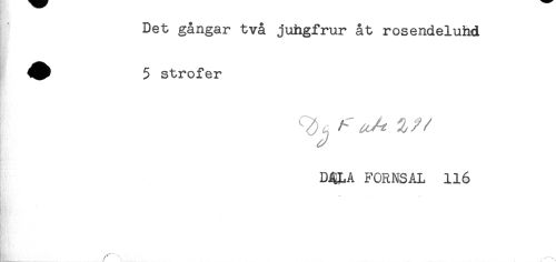 //// Det gångar två juhgfrur åt rosendeluhd //// 5 strofer //// D^LA B^ORMSAL 116 //// - ////