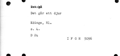 //// Det går ett djur //// * //// Köinge, Hl. //// s. 4. //// D 24 //// I F G H 5096 //// ! ////