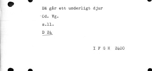 //// Dä går ett underligt djur //// Cd. Vg. //// s.ll. //// D 24, //// I F G H 2400 ////