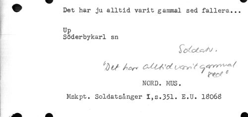 //// Det har ju alltid varit gammal sed fallera... //// Up //// Söderbykarl sn //// NORD. MUS. //// Mskpt. Soldatsånger I,s.351. E.U. 13063 ////