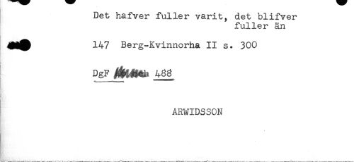 //// Det hafver fuller varit, det blifver //// fuller än //// 147 Berg-Kvinnorha II s. 300 //// DgF 433 //// i //// ARWIDSSON ////