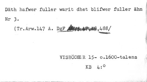//// Däth hafwer fuller warit dhet blifwer fuller ähn //// Nr 3. //// (Tr.Arw.147 A. //// VISBÖCKER 15- o.l600-talens //// KB 4:° ////