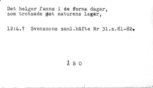 //// Det helger f anns i de forna dagar, //// som trotsade $ot naturens lagar, //// 12:4.? Svenssons saml.häfte Nr 31*s.81-32* //// ÅBO ////