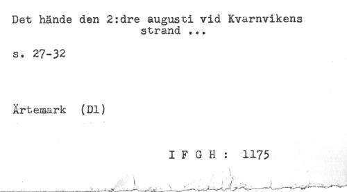 //// Det hände den 2:dre augusti vid Kvarnvikens //// strand ... //// s. 27-32 //// Ärtemark (Dl) //// I F G H : 1175 ////