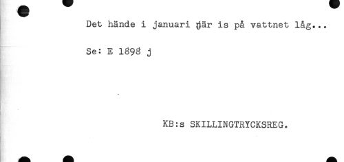 //// H T //// Det hände i januari pär is på vattnet låg... //// Se: E 1393 j //// . //// < //// KB:s SKILLINGTRYCKSREG. //// . ////