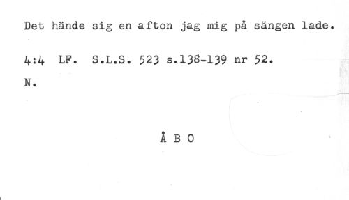 //// Det hände sig en afton jag mig på sängen lade. //// 4:4 LF. S.L.S. 523 s.133-139 nr 52. //// N. //// * //// ÅBO ////