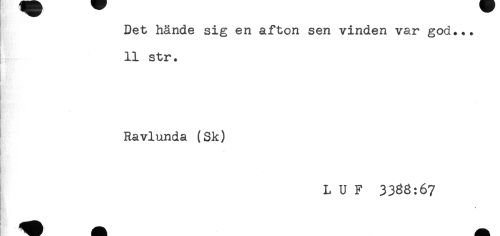 //// Det hände sig en afton sen vinden var god... //// 11 str. //// Ravlunda (Sk) //// L U F 3388:67 ////